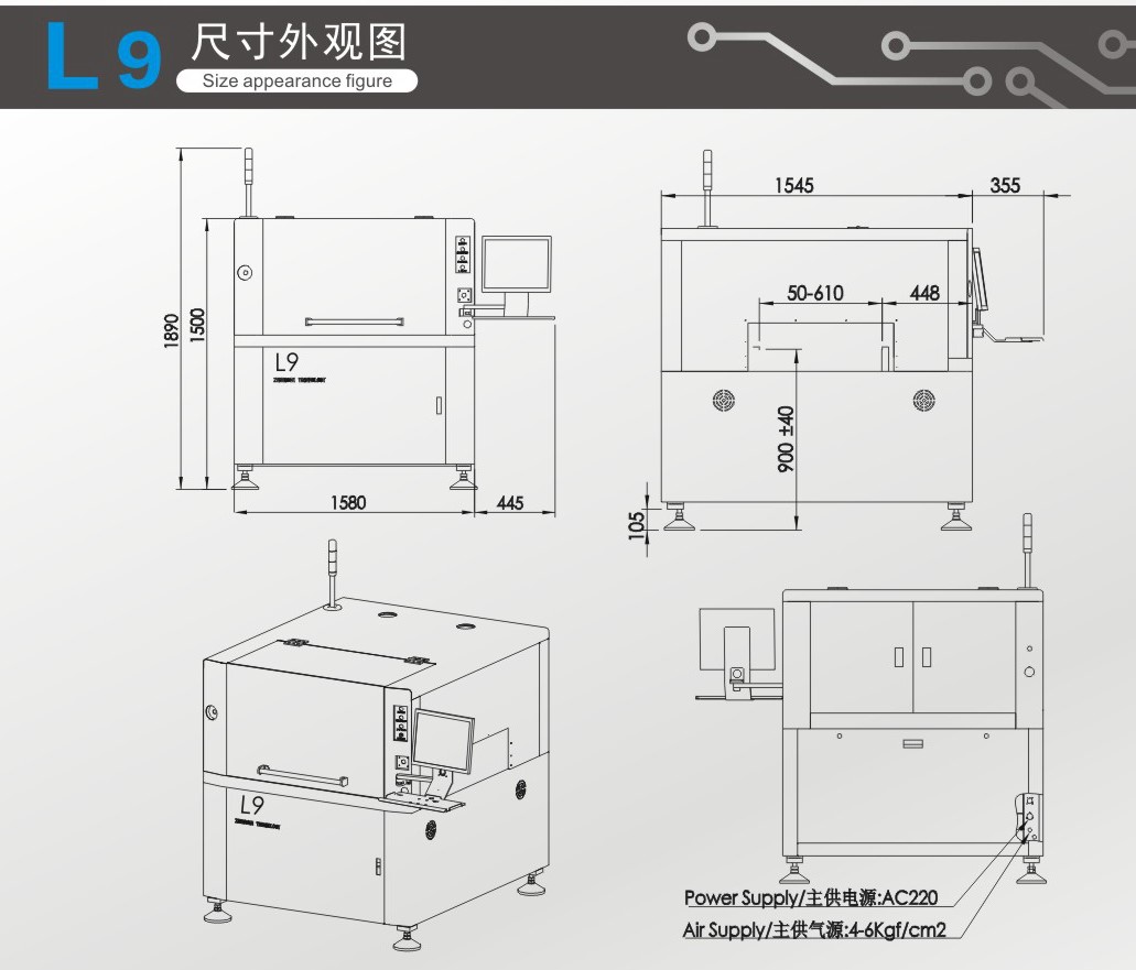 ●  機器外型尺寸:1580X1530X1500mm